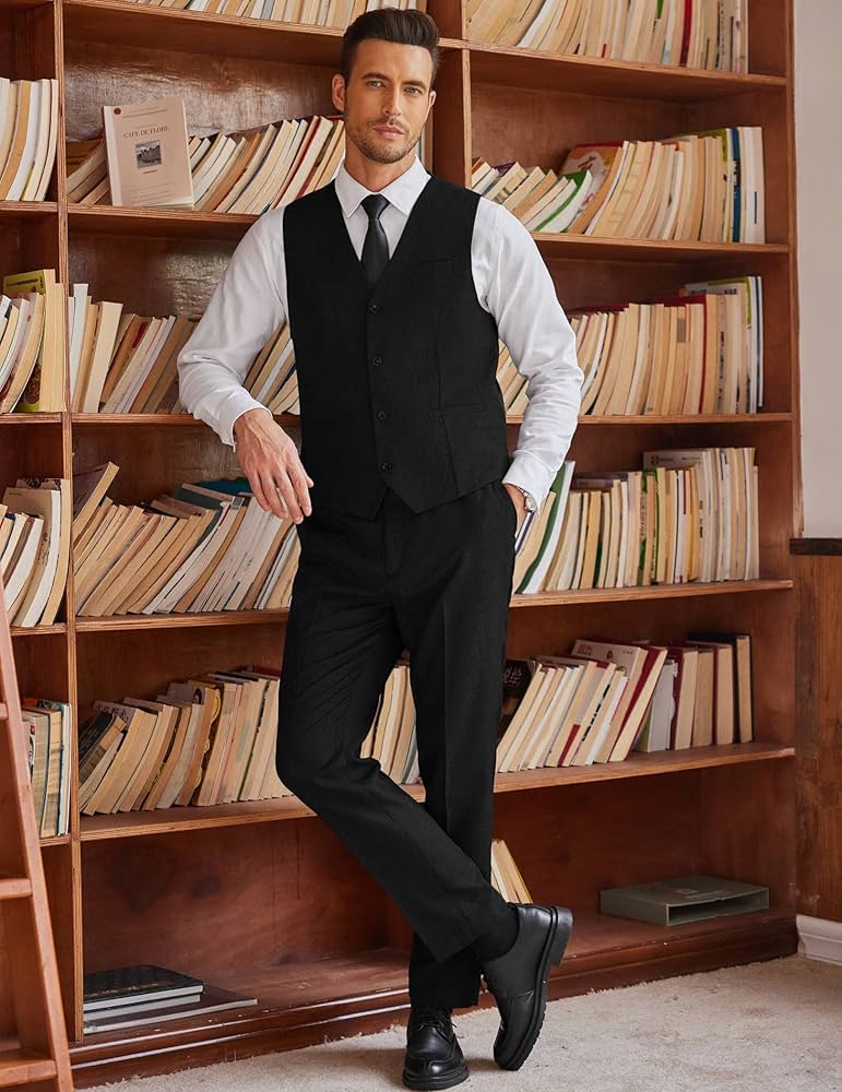 Coofandy Men S 3 Piece Suits Set Vest Pants With Tie For Wedding Business Prom Black