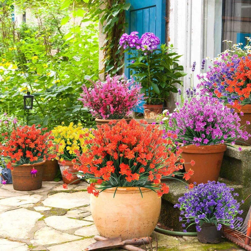 Amazon Com Axylex Artificial Mums Fall Flowers For Outdoors Fake Plants 16 Bundles Faux Outside Greenery Boxwood No Fade Plastic Shrubs Decor Farmhouse Home Garden Thanksgiving Orangegreen Home Kitchen