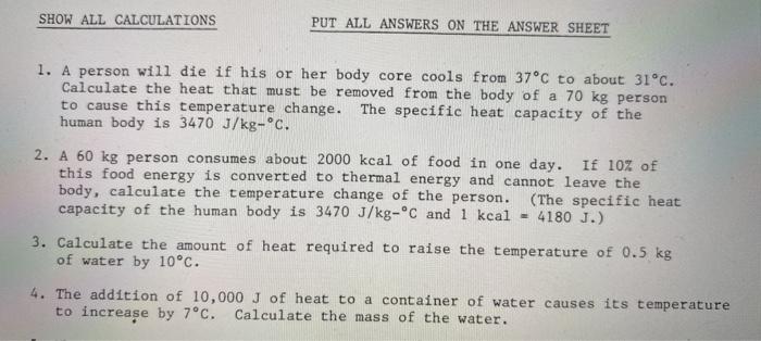 Solved Show All Calculations Put All Answers On The Answer Chegg Com