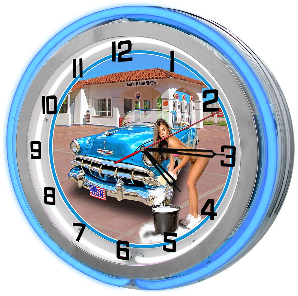 Pin Up Girl Full Service Car Wash Blue 19 Neon Sign Clock Mechanic Garage Neon Clock Mechanic Neon Clocks Etsy Uk